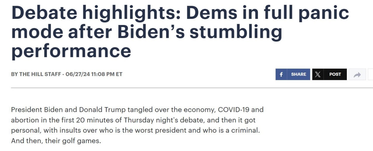 Издание The Hill написало, что демократы "в полной панике" после неудачного выступления Байдена.