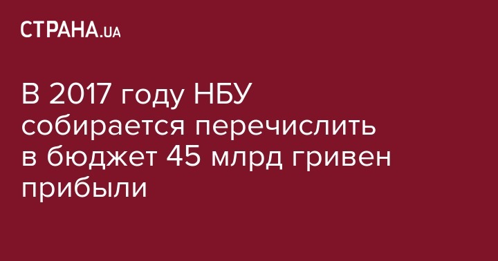 В 2017 году НБУ собирается перечислить в бюджет 45 млрд гривен прибыли