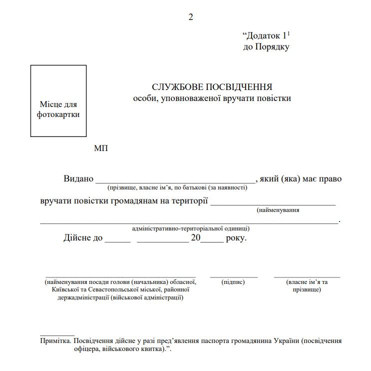 Представитель Кабмина в Верховной Раде Тарас Мельничук сообщил, что правительство решило установить форму служебного удостоверения, которое представитель, назначенный приказом руководителя для вручения повесток, обязан предъявить по требованию гражданина при вручении повестки.