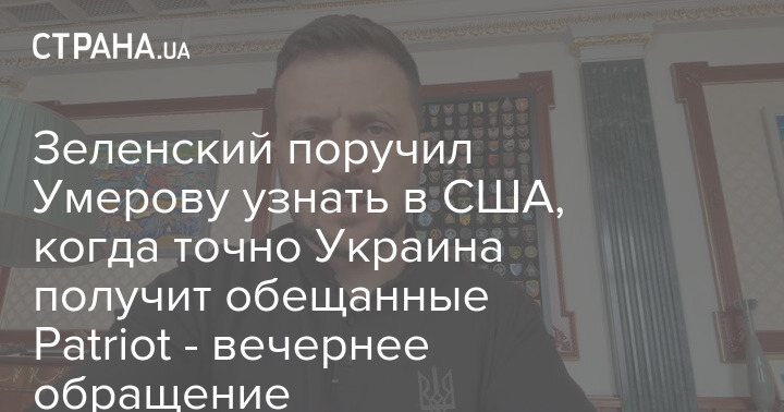 Владимир Зеленский поручил министру обороны Рустему Умерову выяснить у американской стороны конкретные даты, когда в Украину будут поставлены дополнительные системы ПВО Patriot, о которых есть договоренность с партнерами.