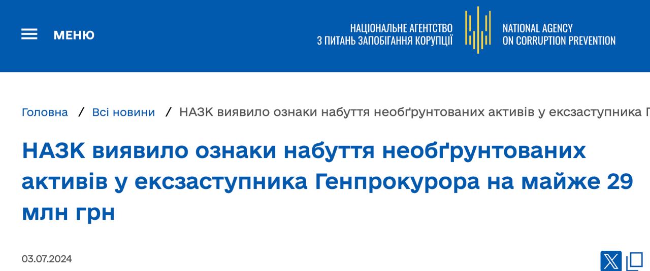 Национальное агентство по вопросам предотвращения коррупции Украины (НАПК) обнаружило признаки приобретения необоснованных активов бывшим заместителем генерального прокурора Дмитрием Вербицким почти на 29 миллионов гривен, в том числе квартиры и земельного участка в Турции.