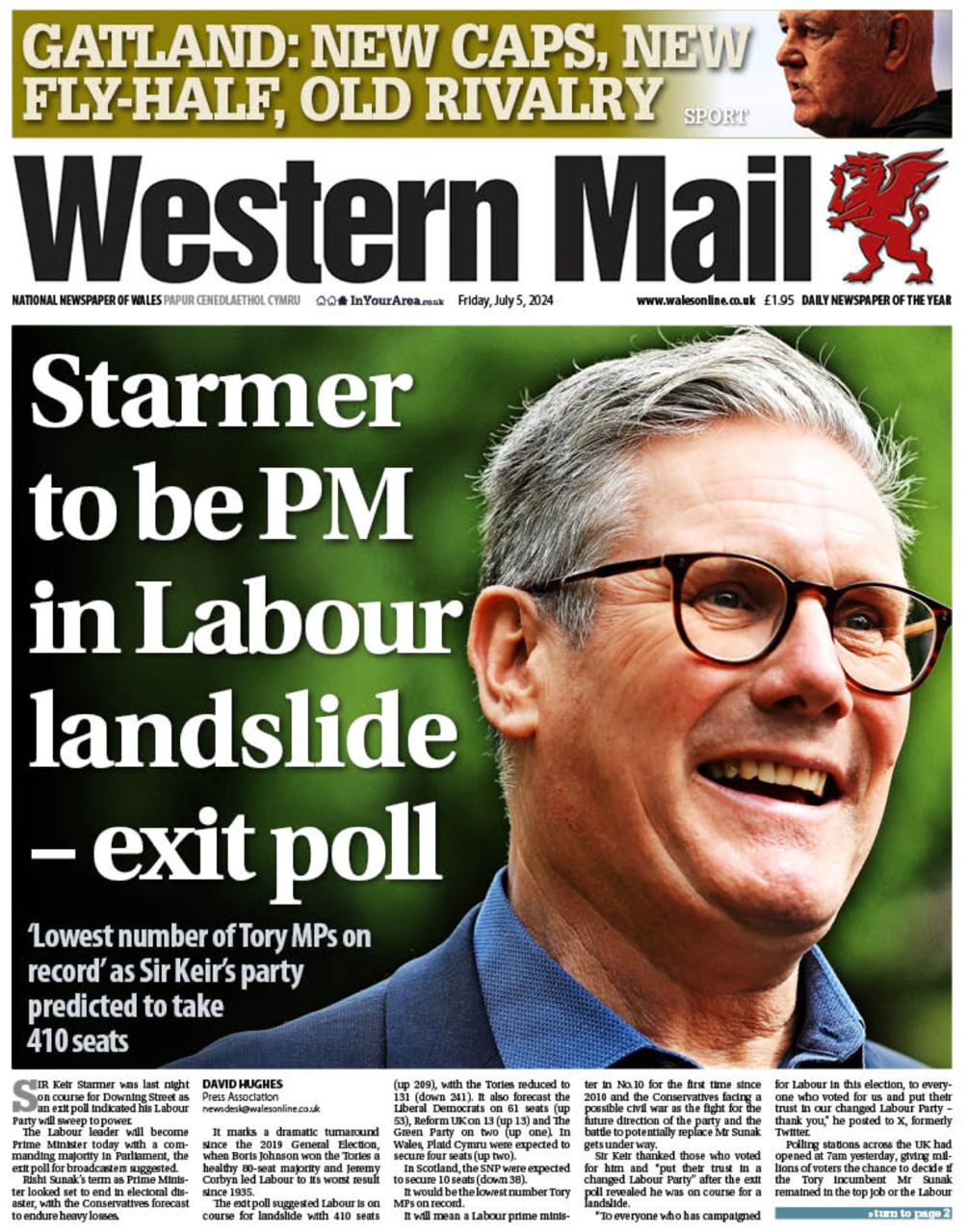 На обложках британских газет сегодня утром одно слово: landslide ("убедительная победа"). Так они комментируют результаты парламентских выборов, на которых разгромно проиграла Консервативная партия премьера Риши Сунака.