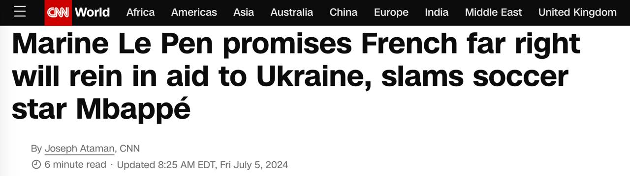 По заявлению Ле Пен, она также намерена отменить разрешение Украине бить французским дальнобойным оружием по территории РФ. Ле Пен подчеркнула, что ее единственная красная линия в отношении Украины — это "предотвращение превращения" Франции в соучастника войны посредством использования французских ракет большой дальности против целей на российской территории.