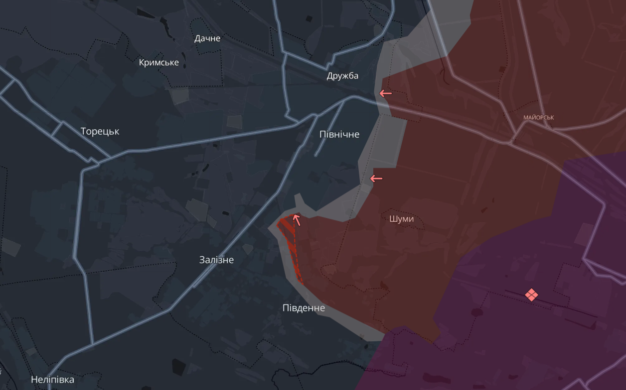 На карте DeepState отмечено продвижение россиян в районе Пивденного.