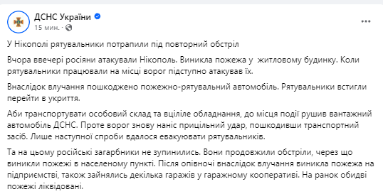 ГСЧС подтверждает, что во время работы спасателей россияне нанесли ещё один удар.