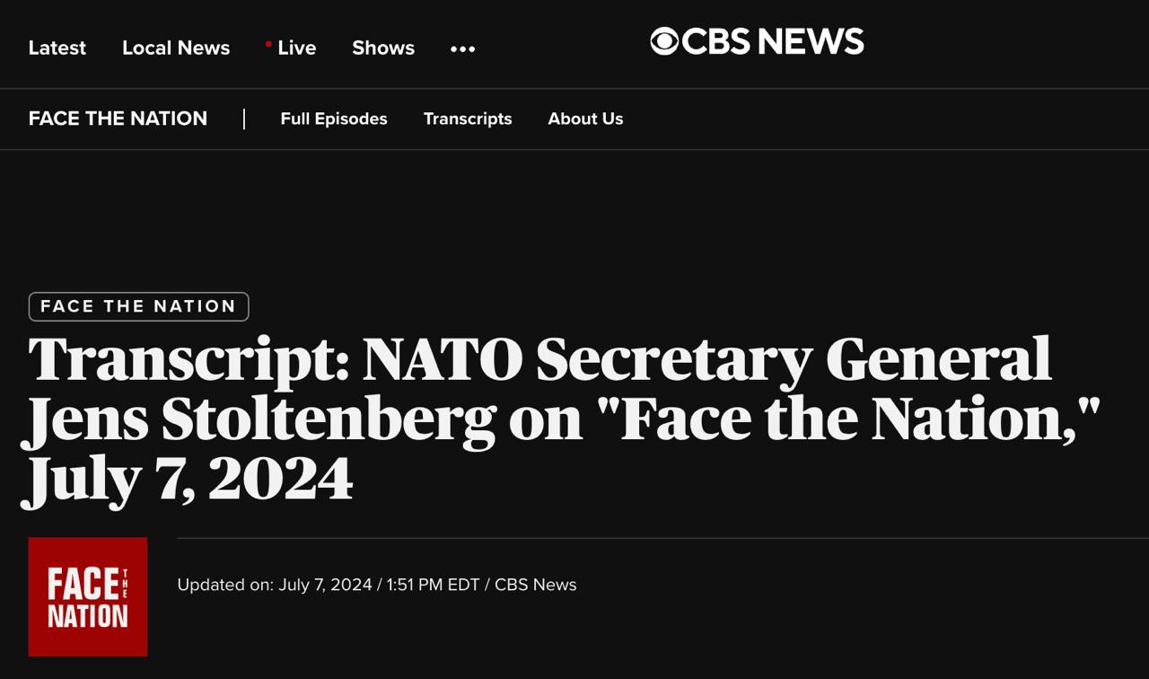 Соответствующее заявление Столтенберг сделал в интервью телеканалу CBS.