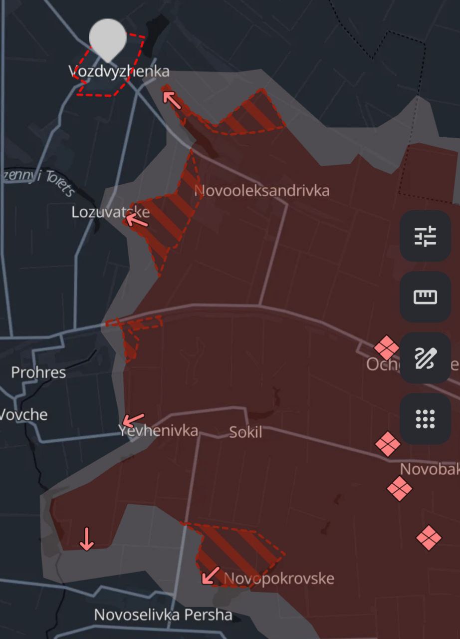 По данным паблика Deep State, они приблизились к селу Воздвиженка, которое прикрывает трассу (оттуда до этой дороги около пяти километров).