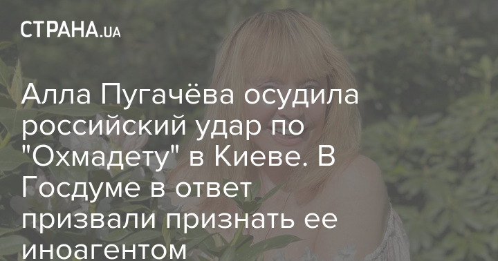Алла Пугачёва осудила российский удар по "Охмадету" в Киеве. В Госдуме в ответ призвали признать ее иноагентом