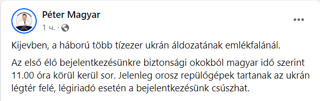 Он уже посетил мемориал погибших на войне у Михайловского собора. Накануне Мадяр сообщал, что везет гуманитарную помощь для пострадавших детей "Охматдета".