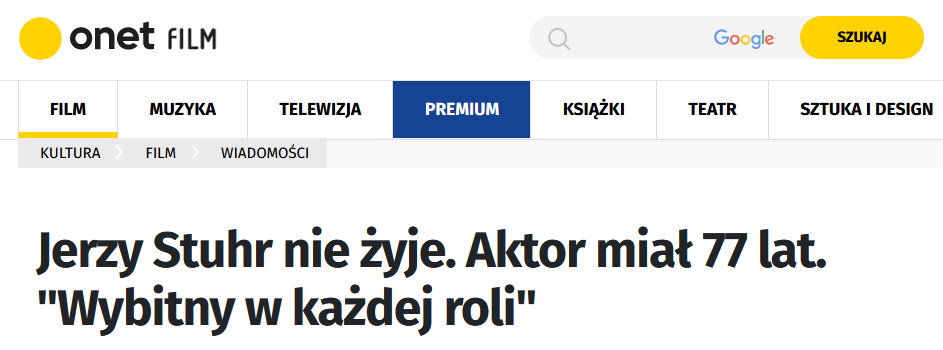 Эту информацию подтвердил порталу Onet его сын, актер Мацей Штур.