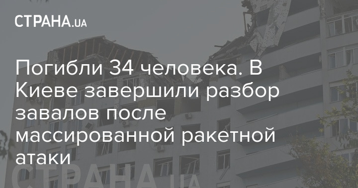 Погибли 34 человека. В Киеве завершили разбор завалов после массированной ракетной атаки