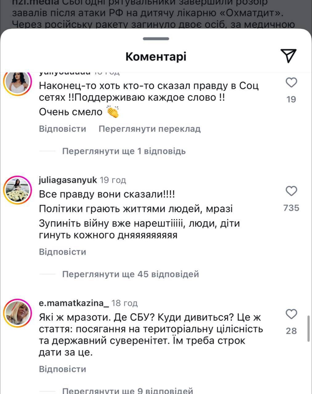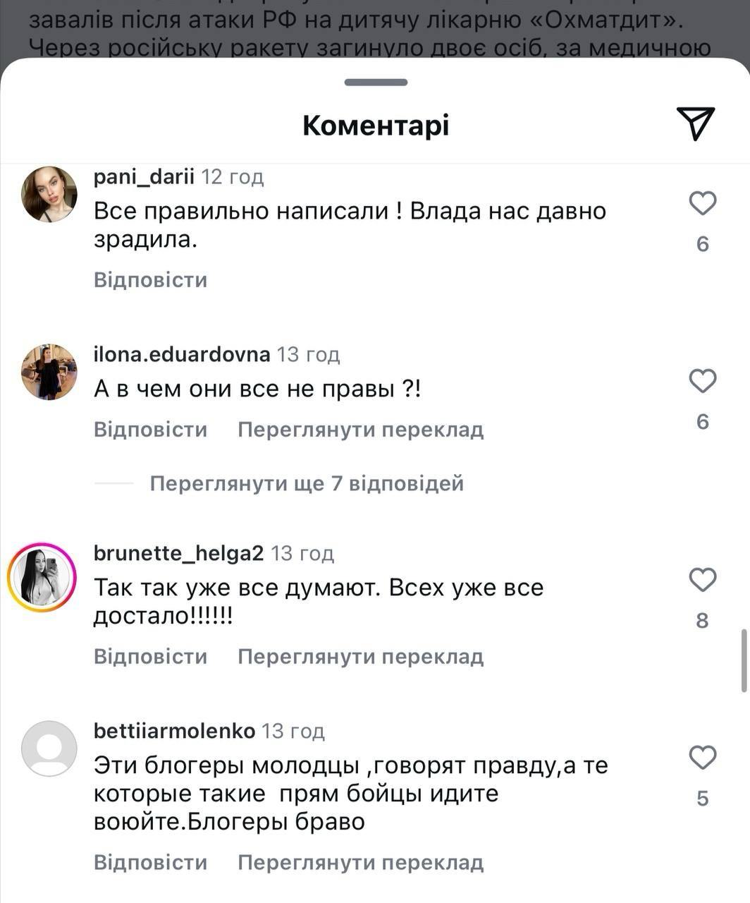 "Все правду они сказали. Политики играют жизнями людей, мрази. Остановите войну уже наконец-то, люди, дети погибают каждый день".