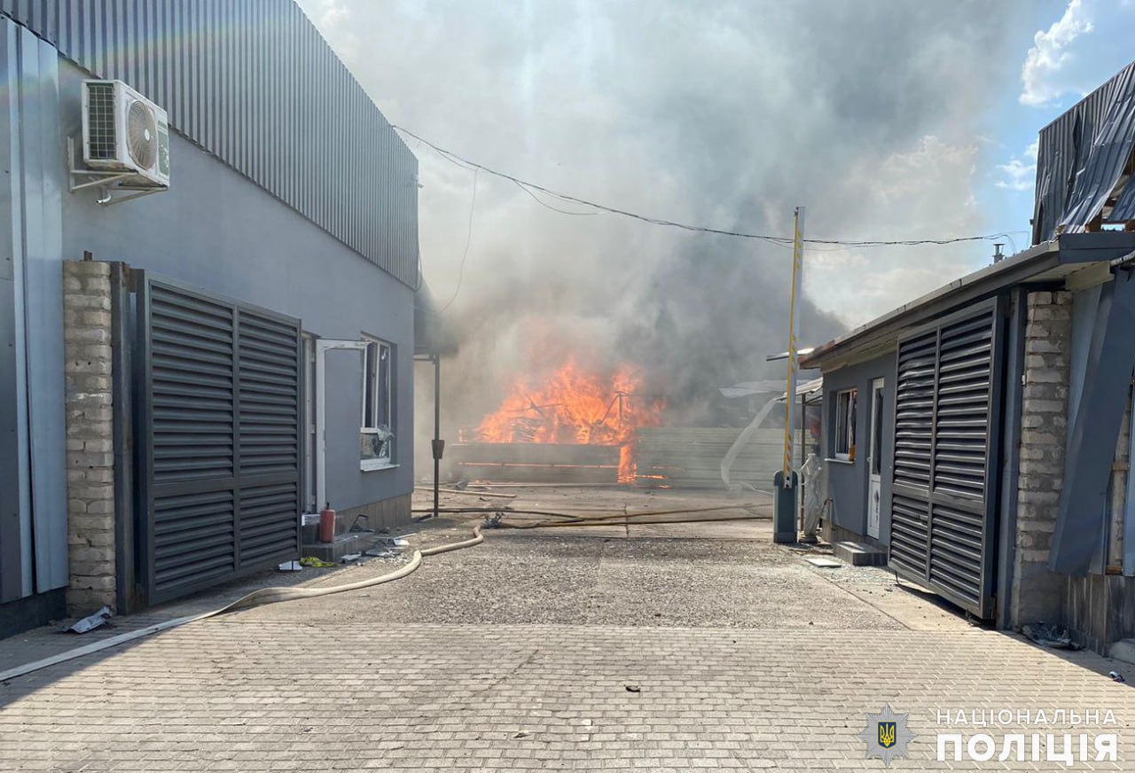 "В результате попадания ракеты по гражданскому объекту – территории предприятия, где находились работники, возник пожар складских помещений", – сообщает Нацполиция.