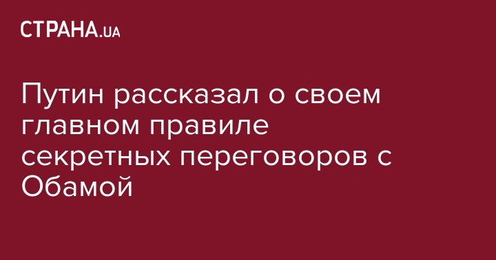 Путин рассказал о своем главном правиле секретных переговоров с Обамой