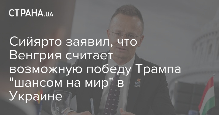 Сийярто заявил, что Венгрия считает возможную победу Трампа "шансом на мир" в Украине