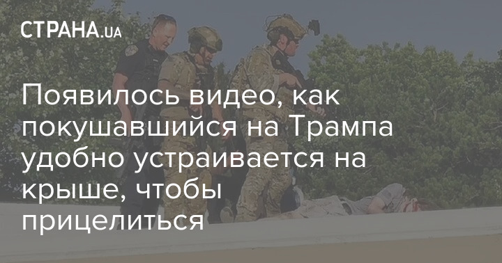 На кадрах, снятых телефоном, очевидцы наблюдают, как мужчина  устраивается на крыше здания, пока Трамп выступает с речью.