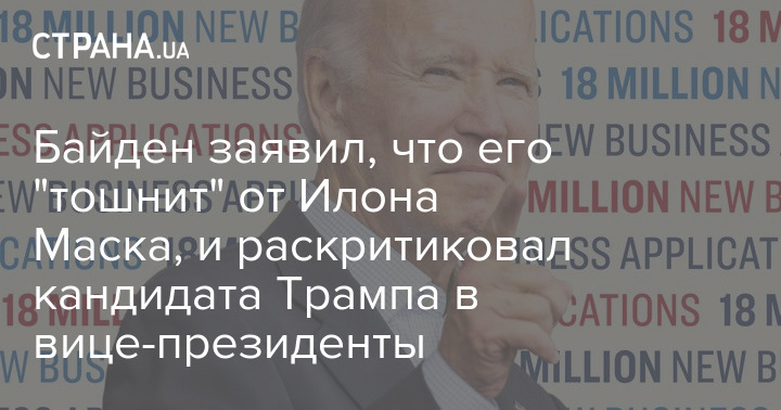 Байден заявил, что его "тошнит" от Илона Маска, и раскритиковал кандидата Трампа в вице-президенты