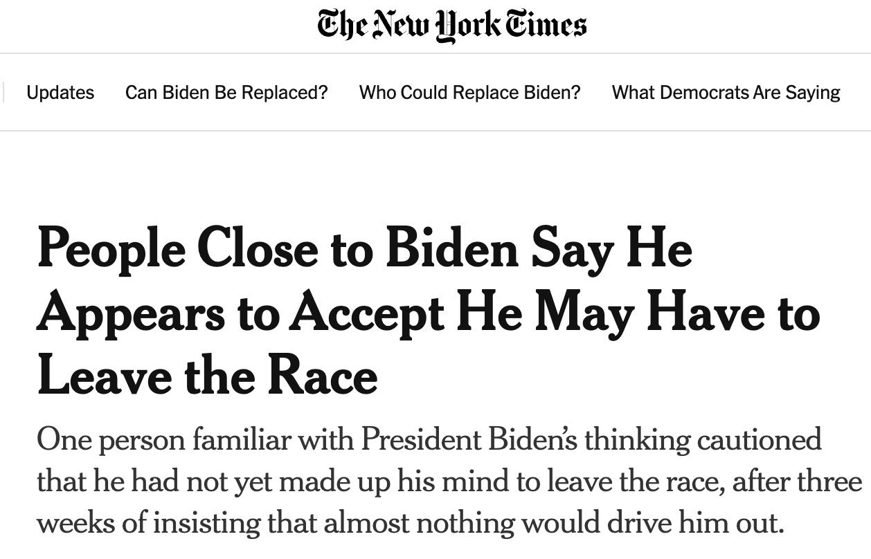 Президент США Джо Байден начинает склоняться к выходу из предвыборной гонки.