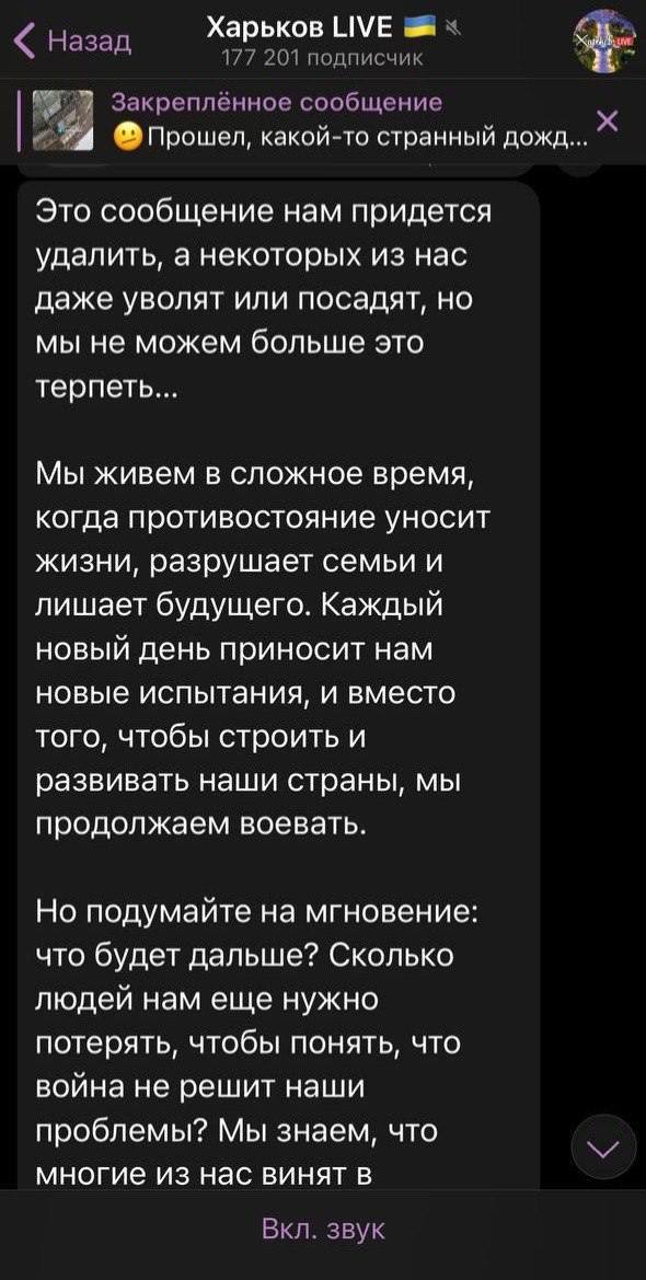 "Это сообщение нам придется удалить, а некоторых из нас даже уволят или посадят, но мы не можем больше это терпеть", - так начинается послание.