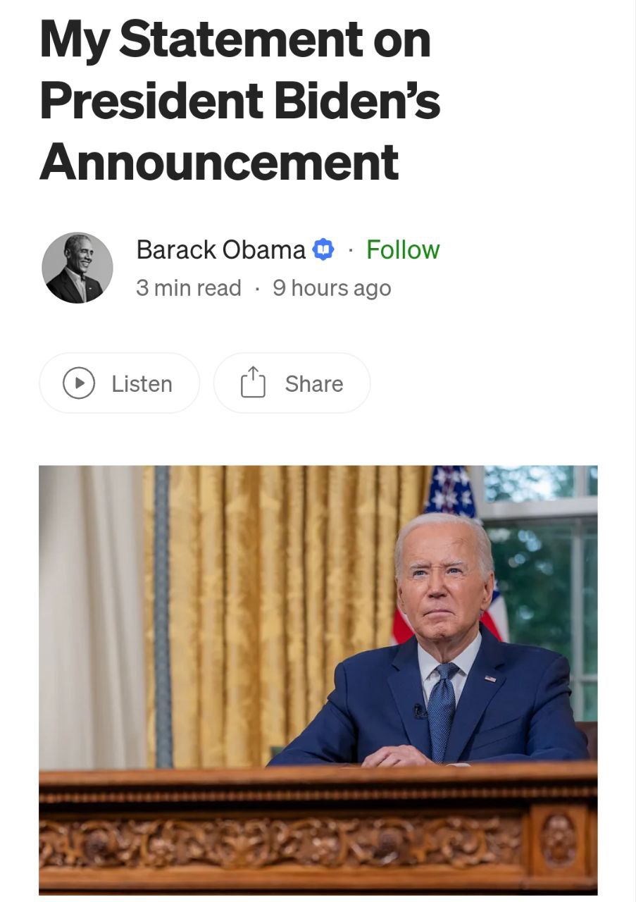 В отличие от Билла Клинтона, который сразу высказался в поддержку Харрис, Барак Обама выпустил заявление, в котором она не упоминается.