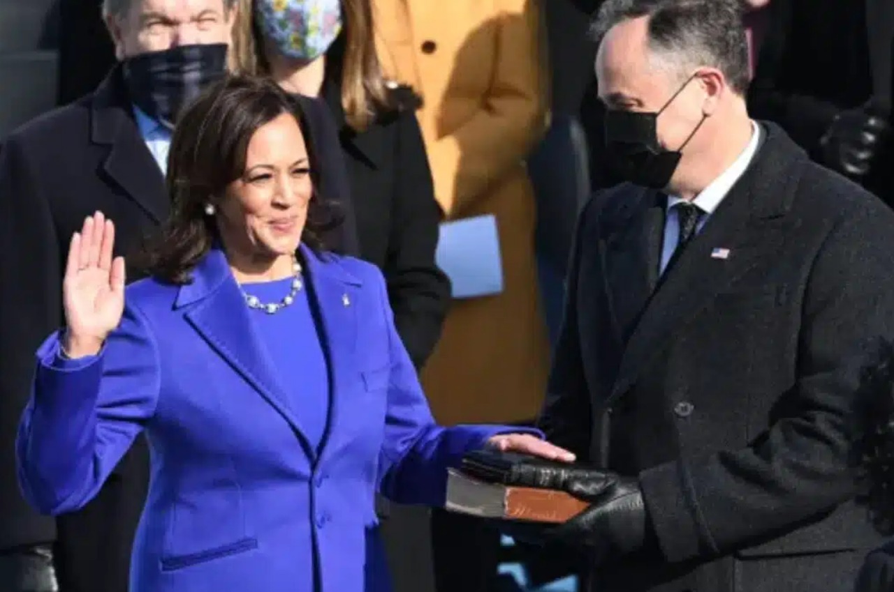 Практически так же выглядела Камала Харрис в день приведения к присяге в роли вице-президента США. Разве что под сиреневым жакетом у нее не серая водолазка, как у Лизы, а блуза в тон.