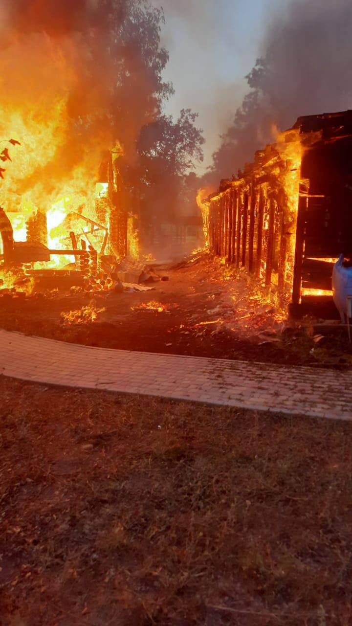 Горели конюшня, хозяйственное здание и гостевой дом. Общая площадь пожара - 1500 кв. метров.
