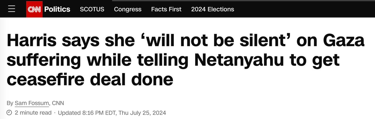 Харрис пообещала "не молчать" о страданиях в Газе и призвала Нетаньяху заключить соглашение с ХАМАС - CNN