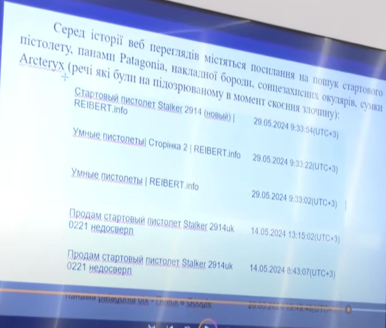 Подозреваемый в убийстве Фарион искал в интернете стартовый пистолет "Сталкер" - переделанный "Макаров", сообщило следствие и показало скрины его запросов.