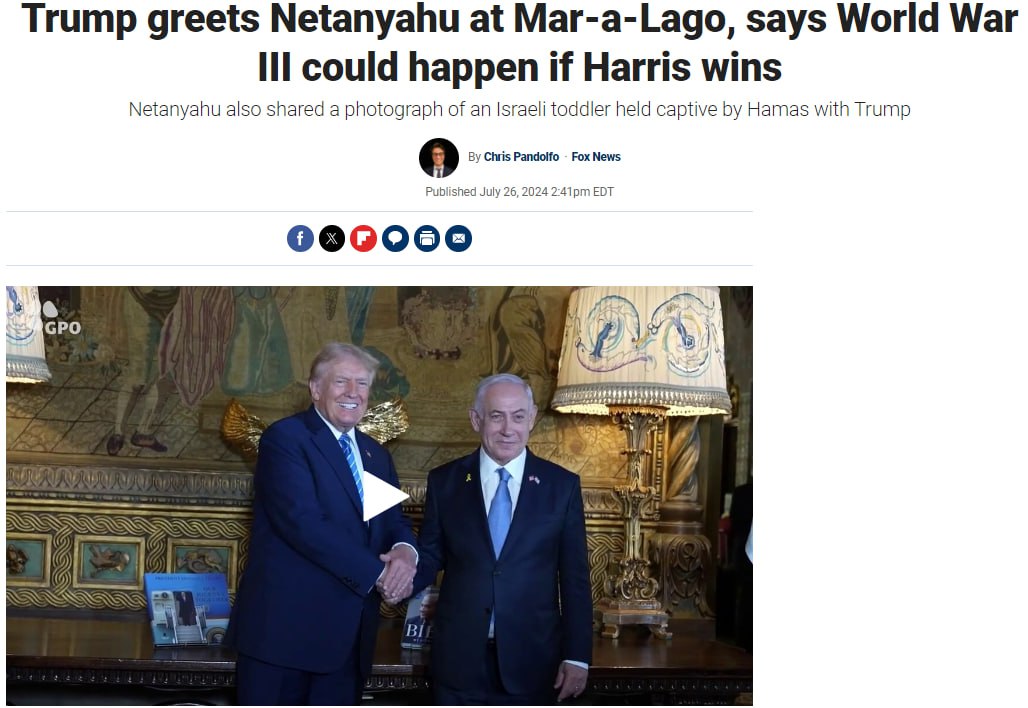 Об этом заявил кандидат в президенты Дональд Трамп на встрече с премьер-министром Израиля Биньямином Нетаньяху, сообщает Fox News.