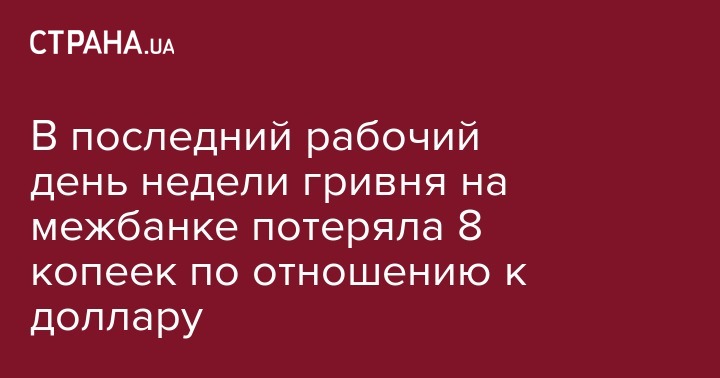 В последний рабочий день недели гривня на межбанке потеряла 8 копеек по отношению к доллару