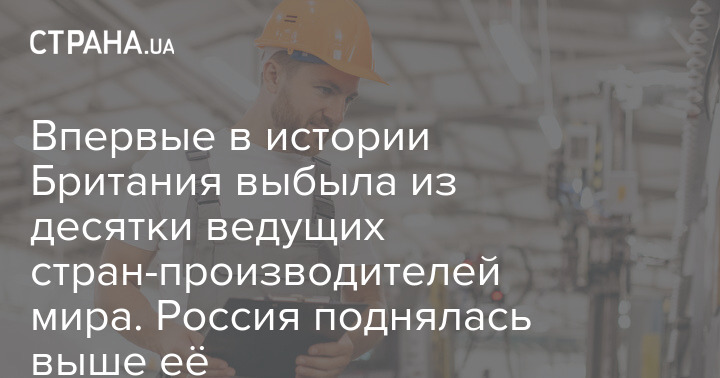 Великобритания впервые выбыла из первой десятки ведущих стран мира по уровню промышленного производства и опустилась ниже России.