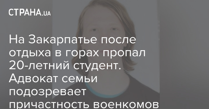 На Закарпатье после отдыха в горах пропал 20-летний студент. Адвокат семьи подозревает причастность военкомов