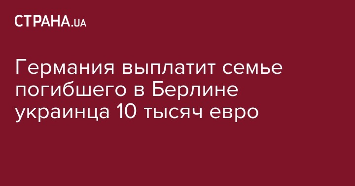 Федеральное правительство Германии заявило о компенсации для семьи гражданина Украины, который погиб в результате террористического акта в Берлине 19 декабря, - 10 тысячах евро,  об этом сообщил посол Украины в ФРГ Андрей Мельник.