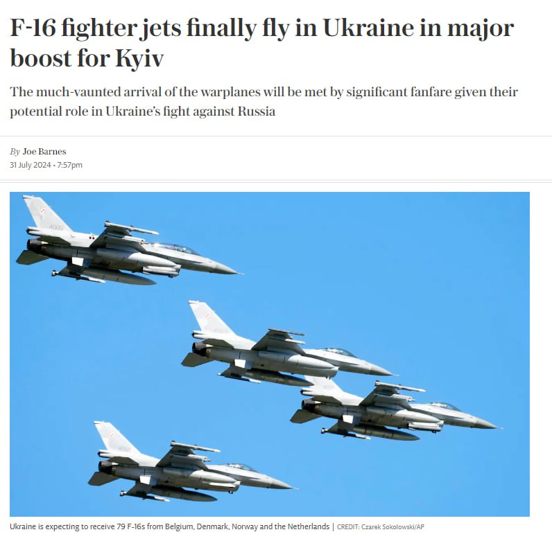 Также газета The Telegraph со ссылкой на представителя Воздушных сил сообщила, что Украина уже использовала F-16 в качестве ПВО: это были первые боевые вылеты. Источник издания "не отрицал" данную информацию.