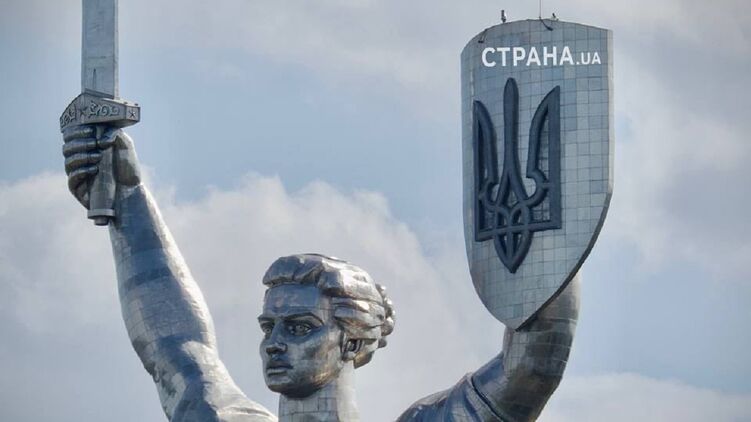 Тризуб, установленный на щите "Родины-матери". Фото: "Страна"