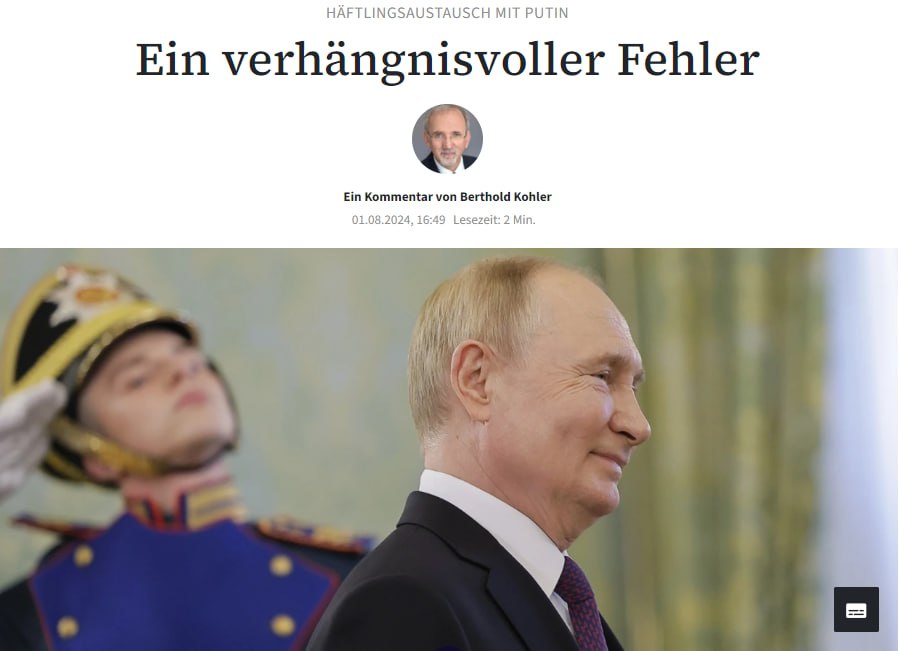 При этом немецкая генпрокуратура заявила, что "разочарована" обменом "убийцы из Тиргартена" Вадима Красикова, пишет Frankfurter Allgemeine Zeitung.