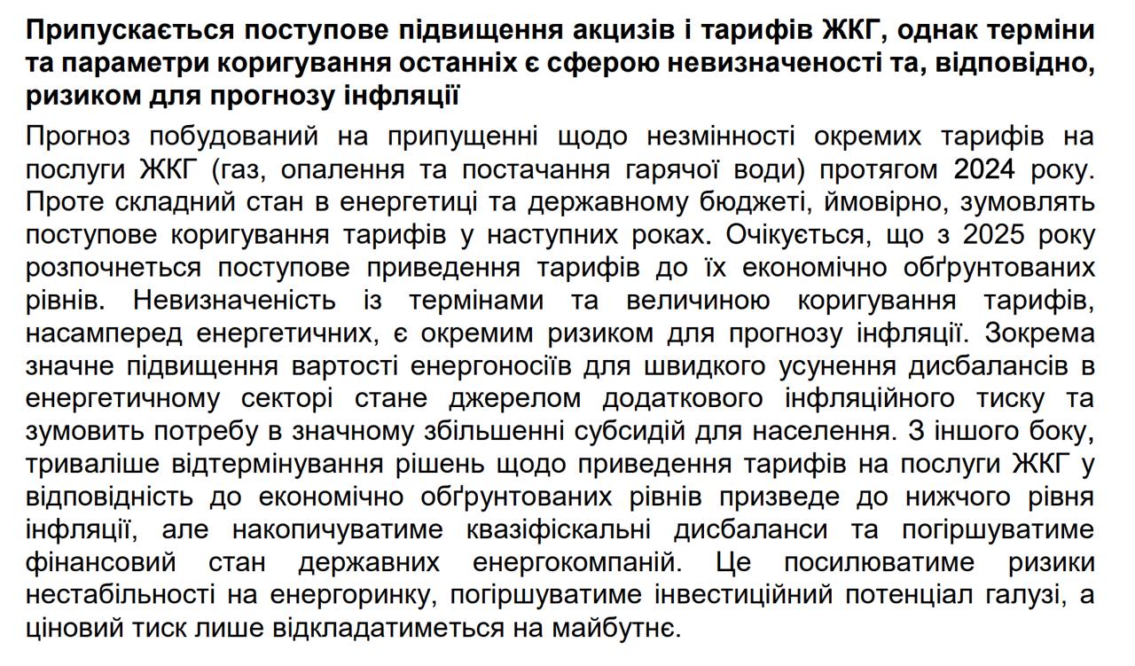 Однако заморозка тарифов на текущем уровне "будет накапливать квазифискальные дисбалансы и ухудшит финансовое состояние государственных энергокомпаний", оттянув ценовое давление на будущее, считает НБУ.