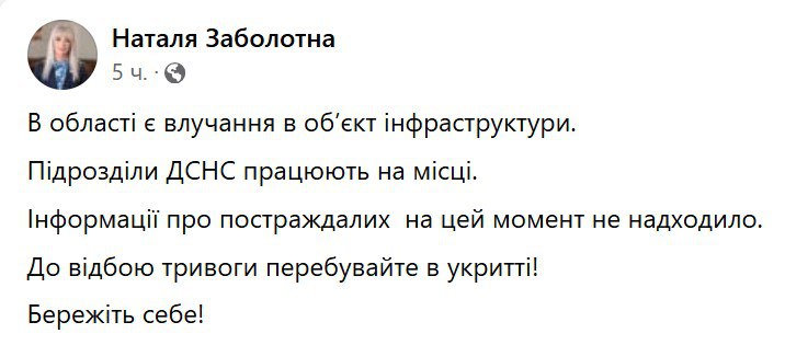 8.59 В Винницкой области был прилет по объекту инфраструктуры.