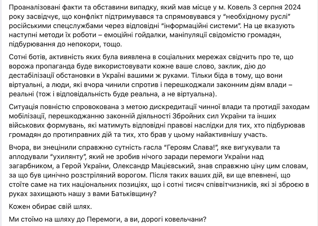 "Ситуация полностью спровоцирована с целью дискредитации действующей власти и противодействия мерам мобилизации, препятствованию законной деятельности Вооруженных сил Украины", - говорится в сообщении ТЦК.