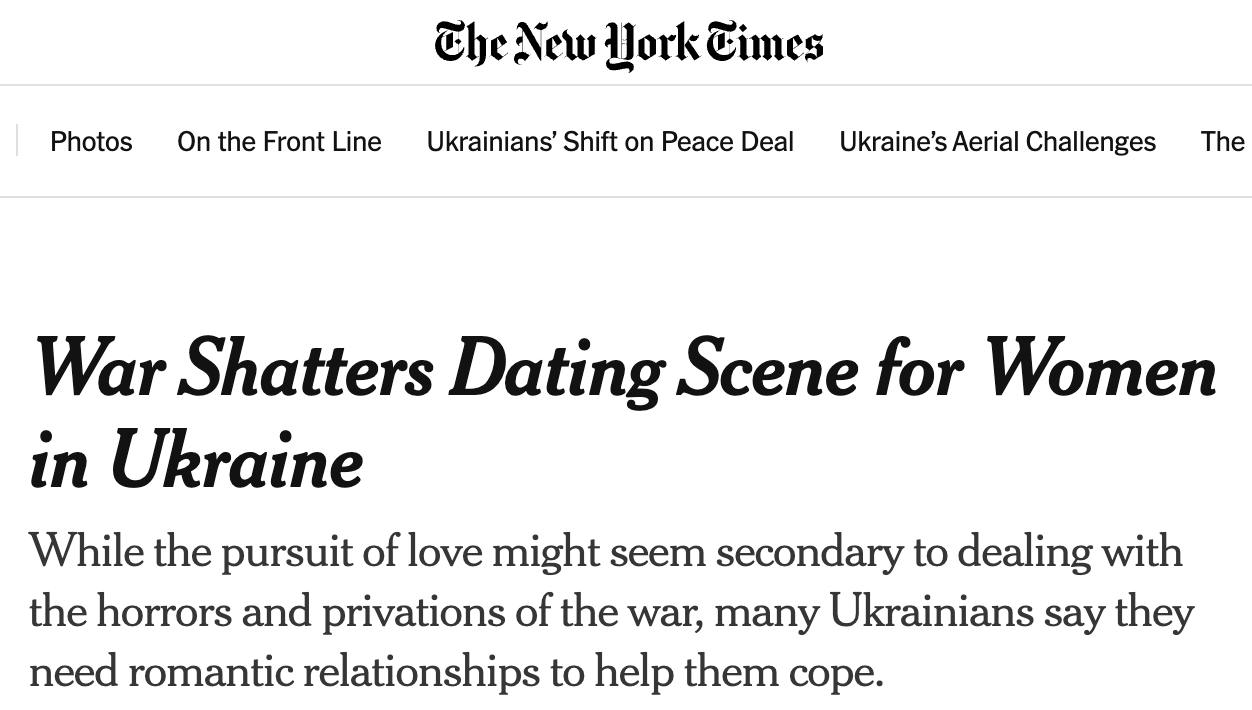 Между тем газета The New York Times пишет о том, что многие украинки не могут найти себе мужчин из-за войны и мобилизации.