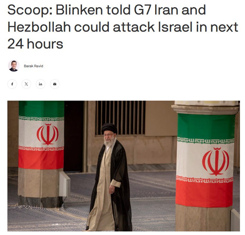 Госсекретарь США Энтони Блинкен сообщил странам "Большой семерки" (G7), что нападение Ирана и "Хезболлы" на Израиль может начаться уже в понедельник, 5 августа.