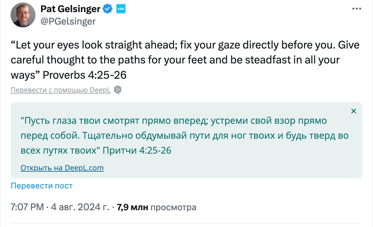 Глава Intel прокомментировал ситуацию притчей Соломона.
