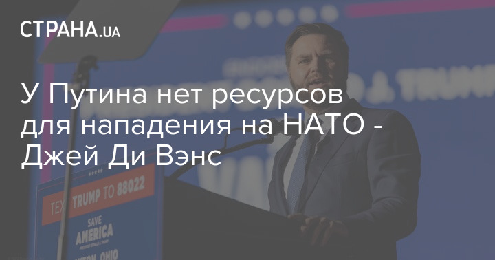 Кандидат в вице-президенты США от Дональда Трампа Джей Ди Вэнс заявил, что у главы Кремля Владимира Путина нет достаточного объёма ресурсов для нападения на НАТО.