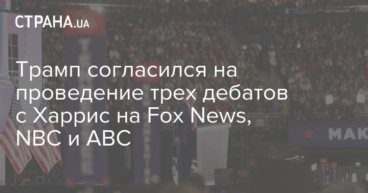 Дональд Трамп заявил, что он согласен на проведение трёх президентских дебатов на крупнейших телеканалах, начиная с дебатов на Fox News 4 сентября.