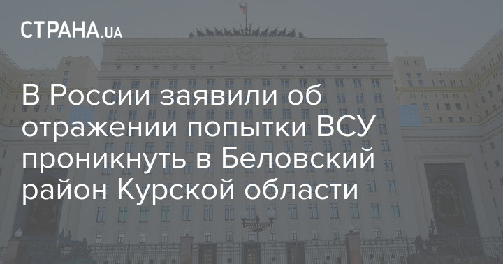 Министерство обороны РФ заявило, что отразило "попытку прорыва ВСУ" в Беловский район Курской области.