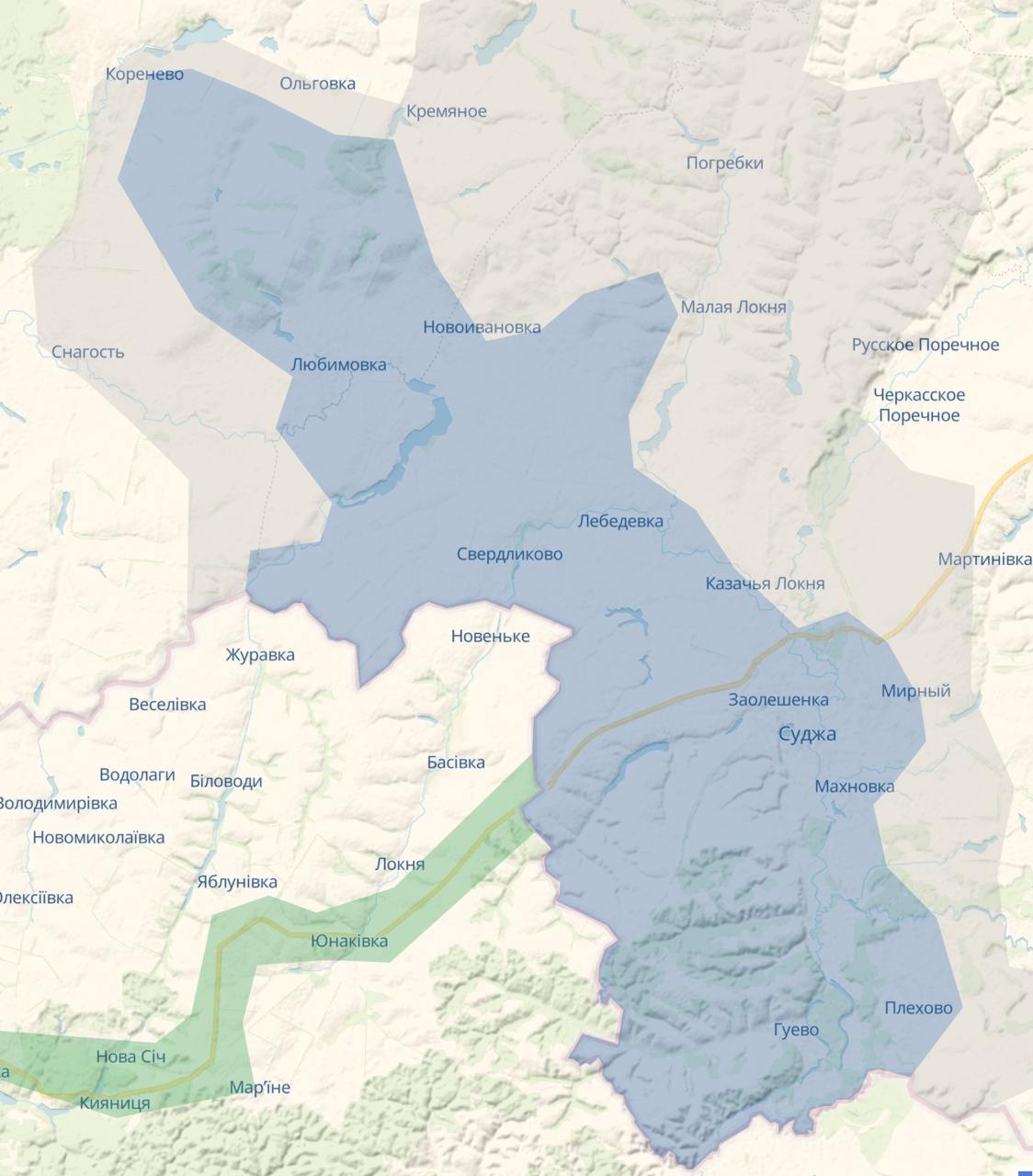 15.27 ВСУ взяли под контроль Суджу и еще ряд населенных пунктов Курской области, сообщает Deep State. А именно Любимовку, Гончаровку, Лебедевку, Заолешенку, Куриловку, Плехово и другие.