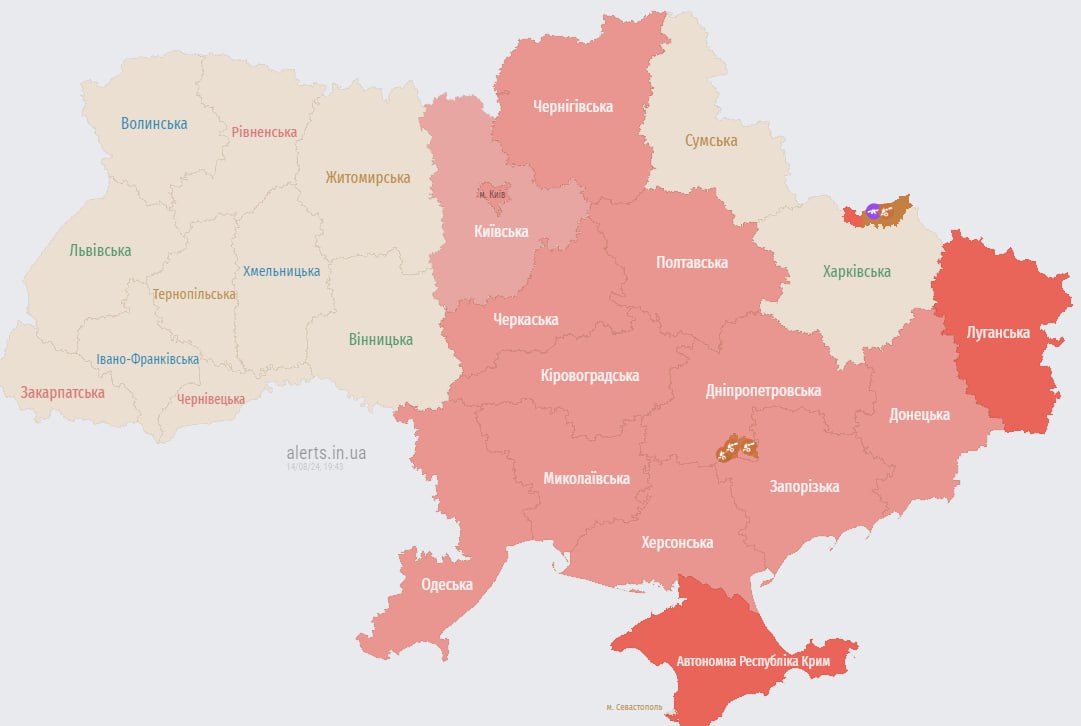 21.08 Отбой тревоги в Киеве и большинстве областей.
