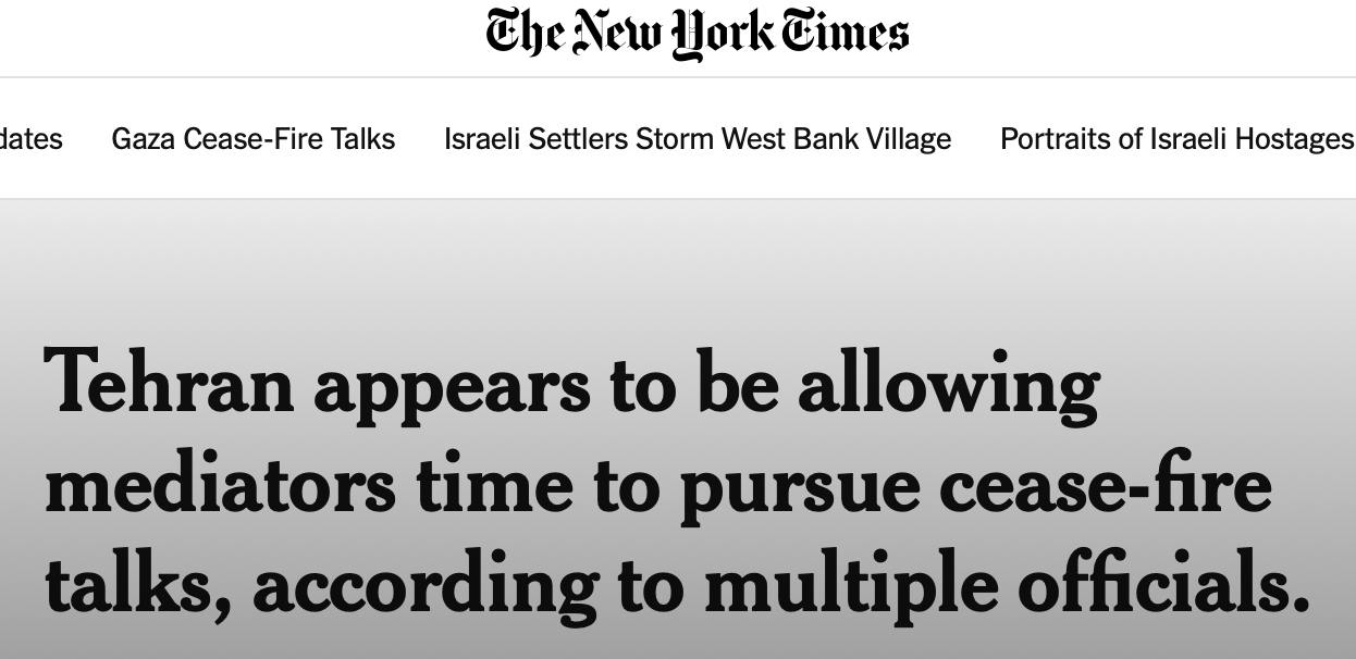 Агентство Reuters также ранее сообщало, что Иран готов отложить атаку для достижения договоренностей о прекращения огня в Газе.