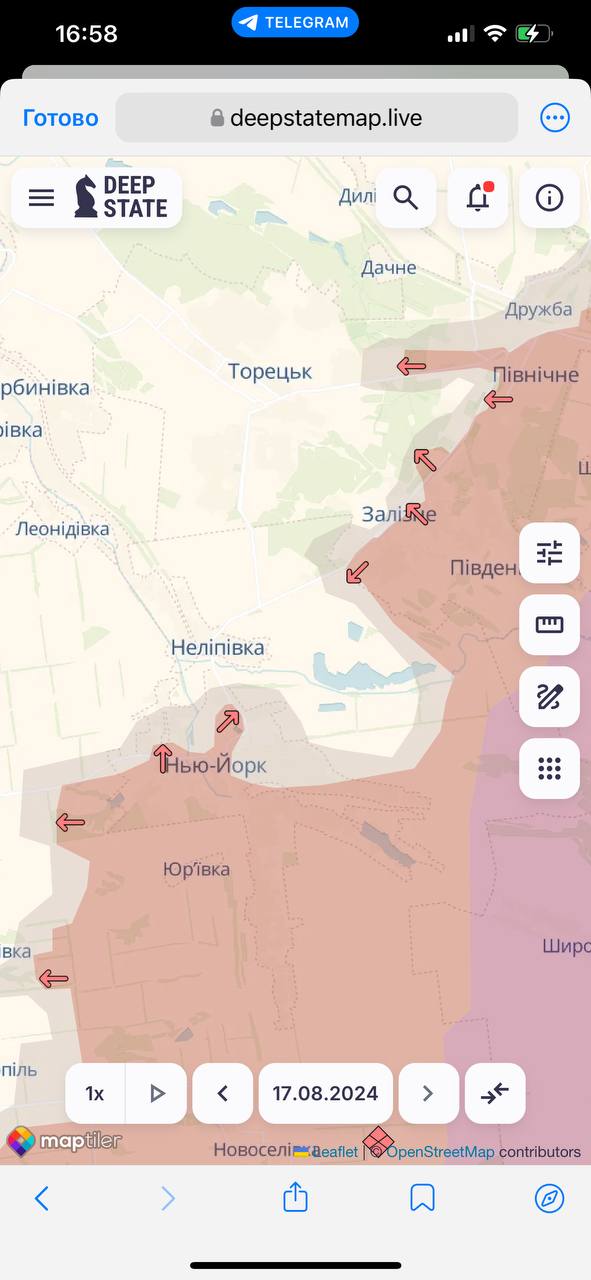На картах, которые публикуют украинские и российские военные паблики, небольшая часть Нью-Йорка все ещё под контролем ВСУ.