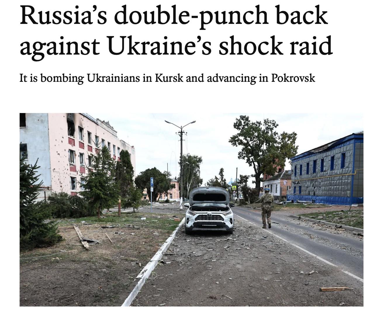 «В течение первых пяти дней это было ужасно эффективно», но с утратой элемента неожиданности украинские достижения замедлились. Украинские солдаты, воюющие в Курской области, говорят, что они уже начинают видеть другой уровень сопротивления. Потери растут. Россияне насытили фронт более подготовленными подразделениями, включая морских пехотинцев и спецназ.